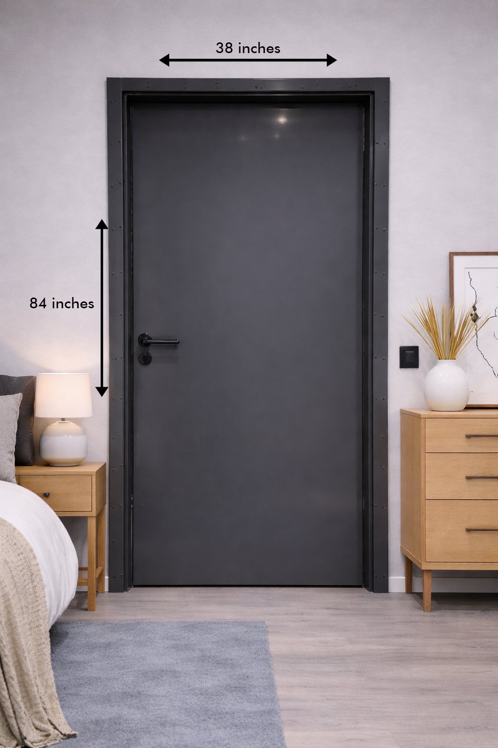 This interior door features a rich dark mahogany finish, blending deep brown tones with subtle reddish undertones for a warm, luxurious look. The smooth wood grain texture enhances its elegant appearance, making it a perfect statement piece for modern and contemporary spaces.